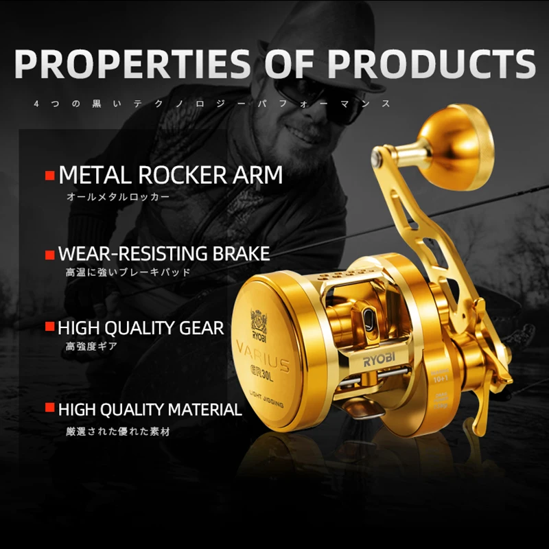 Amazing!! Japan RYOBI VARIUS GR30L Slow Jigging Full Metal Fishing Reel Light Jigging Drum Wheel 11BB 15KG For Boat Bait Casting Reel Sea